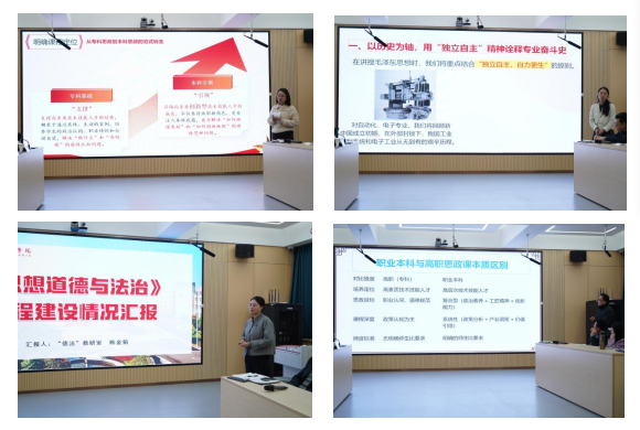 四位骨干教师李鲁静、王真真、陈金菊、周永,围绕主讲课程建设,从课程内容设置、“四新”融合、人工智能技术融入、中高职思政一体化等方面阐述了课程在本科层次的基本要求和具体实践方式、方法。