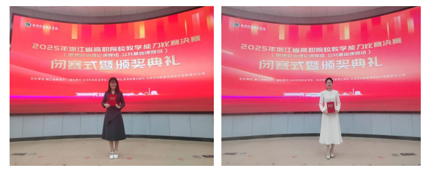 11月24日,2025年浙江省高职院校教学能力比赛决赛顺利结束。马克思主义学院户新竹、喻婷婷两位教师凭借出色表现荣获决赛二等奖!